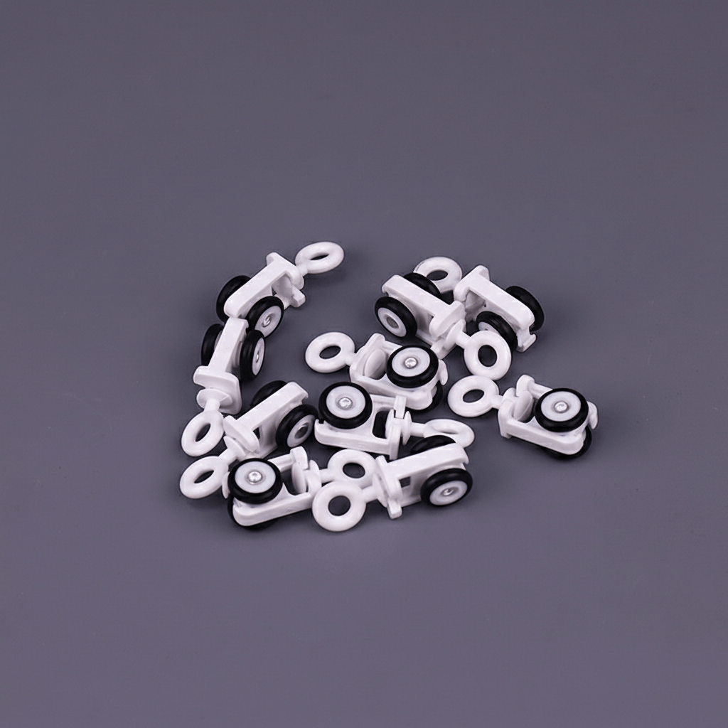 Ищете, как сделать движение штор по карнизу абсолютно плавным и бесшумным? Наш бегунок с прорезиненными роликами — простое, но гениальное решение для любой раздвижной системы. Эти детали заменят стандартные пластиковые бегунки, обеспечив вашим шторам движение без рывков, скрипа и лишнего шума.