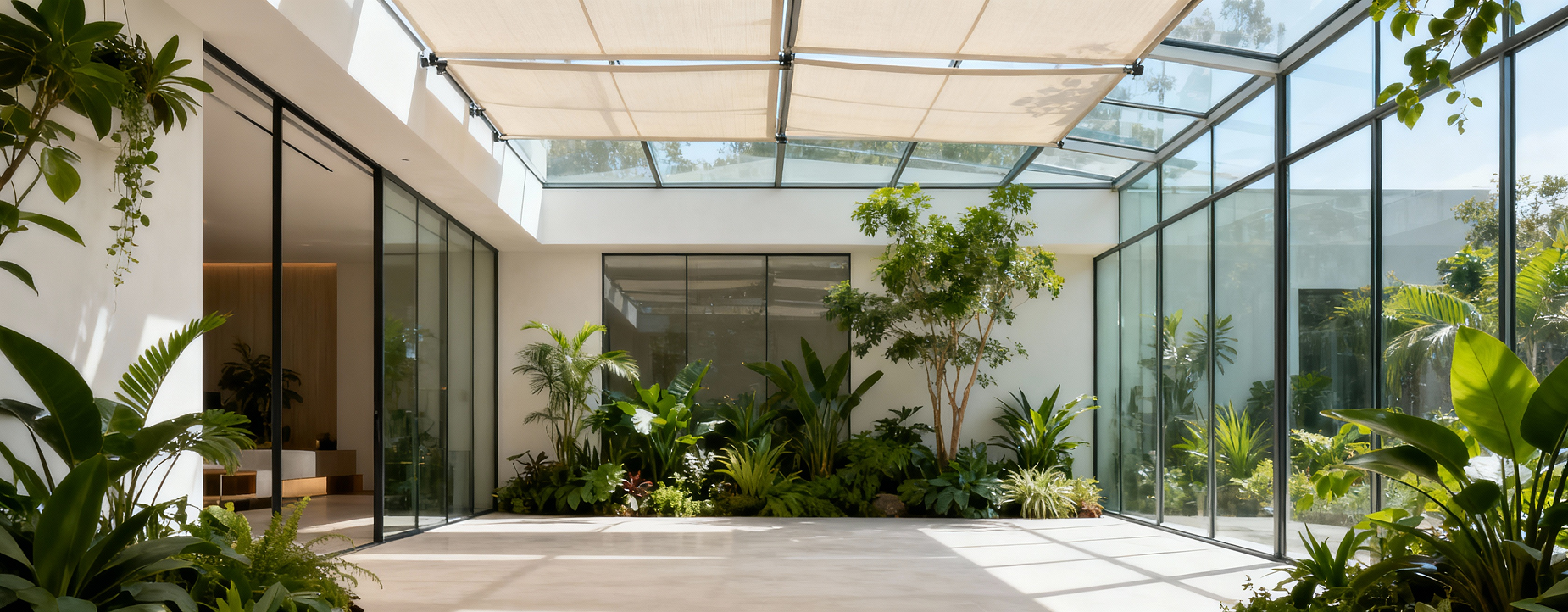 Зимний сад — сложная экосистема. Обычные шторы или жалюзи, купленные в строительном гипермаркете, не решают ключевых задач: